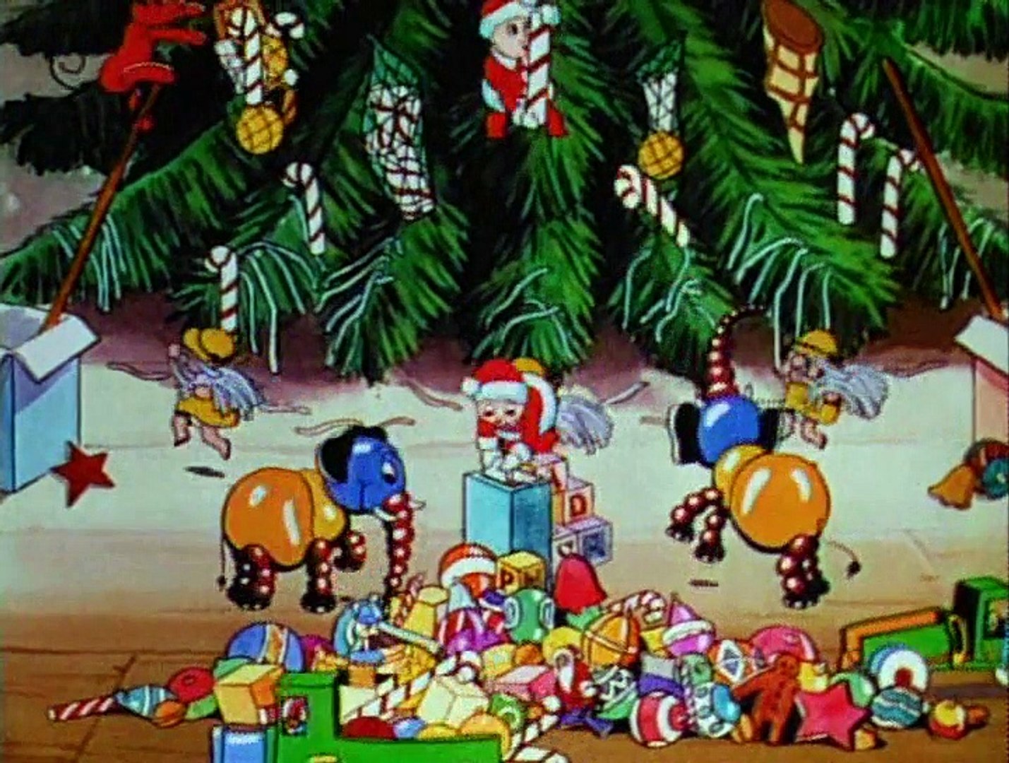 Santa lands on the roof comes down the chimney and opens his bag. The toys march out and decorate the tree with the toy soldiers shooting balls from their cannon a toy airplane stringing a garland like skywriting and the. Nick is seen delivering the toys he made in last years Santas Workshop.